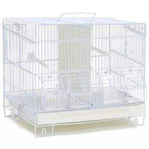 Jaula de planta cuadrada especial para ninfas y loritos. Las jaulas LORIB tienen incluidas en el kit comederos, perchas y una bandeja extraíble en la zona inferior que facilita en gran medida la limpieza.